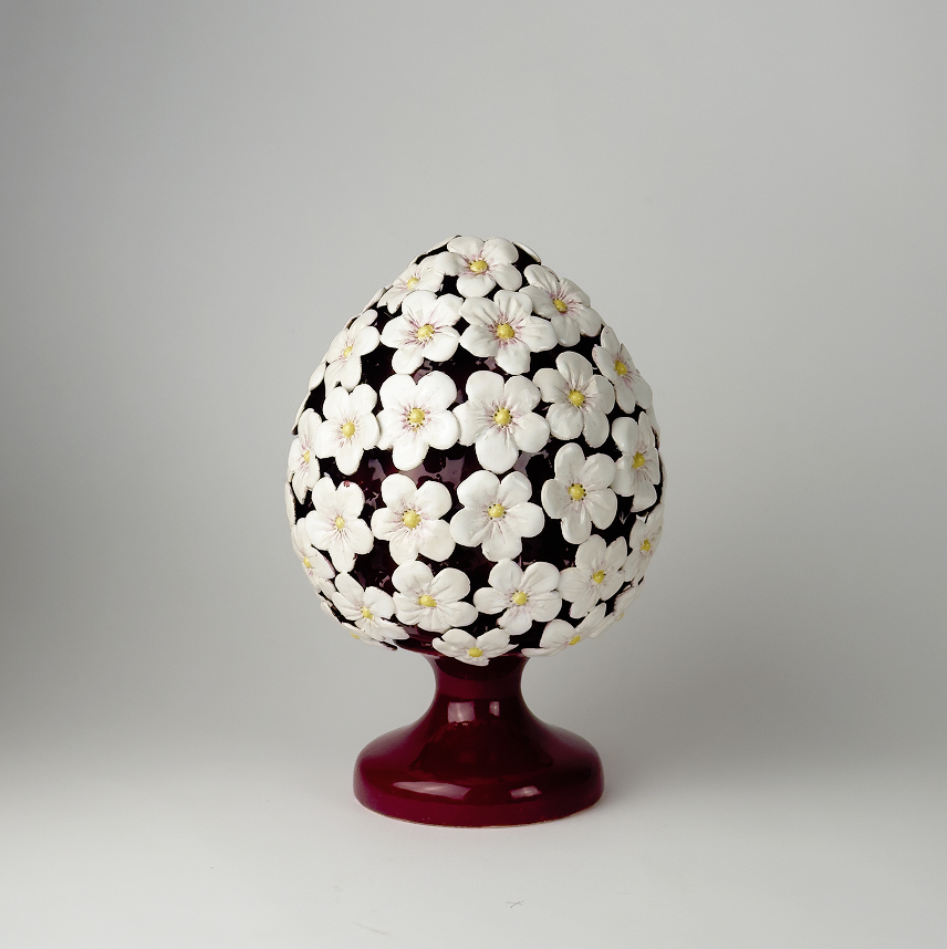 Realizzato al tornio in gres bianco. Modellato e decorato a mano con applicazione di cristalline trasparente matt e colorata lucida